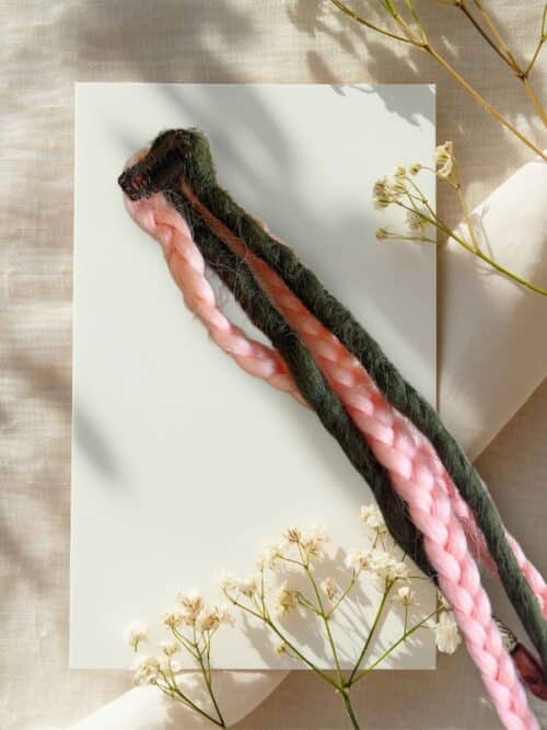 synthetic dreadlock extensions 50/55cm in pink and dark green.
