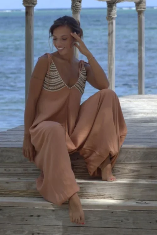 Is ideal for hot summer days. It is loose and long to the bottom, but you can also adjust the height at which you want the neckline since you can tie its thin straps with a bow at the height you prefer. It has a V-neckline on the chest and back, although the latter is even more pronounced and sexy. Ideal to take to the beach and then have a drink without getting too hot.